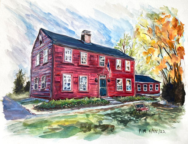 Paintings, drawings, or mixed media pieces inspired by real-life subjects such as store fronts, houses, parks, nature scenes, interior spaces, or people.